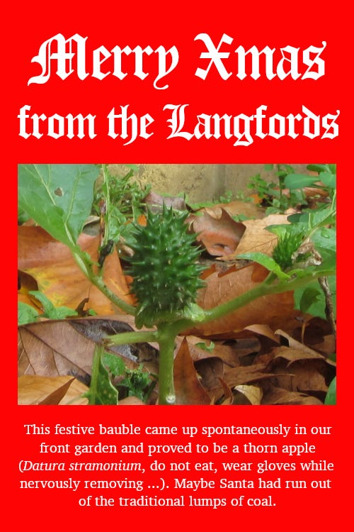 Part of our long-standing seasonal tradition is the sending of cheapskate e-cards like the above. Our year is further explained in the “What we did in 2025” note included with actual physical cards and now lazily copied here: